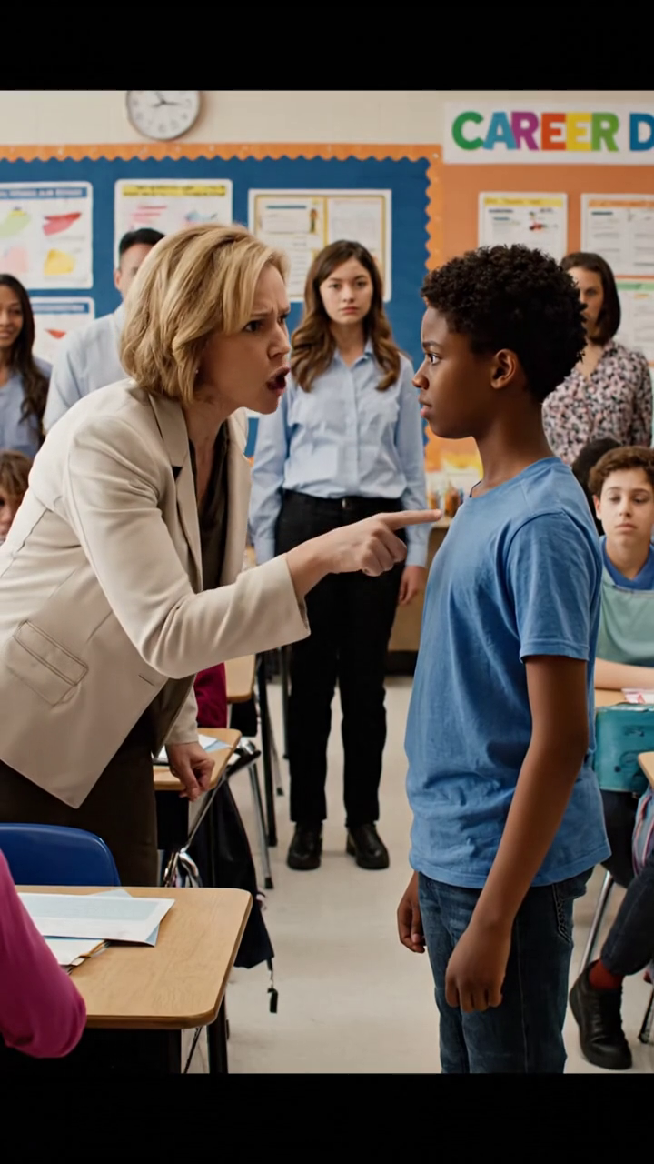 La photo virale s’est propagée plus vite que prévu. L’image du général Hughes en uniforme vestimentaire complet, quatre étoiles visibles, agenouillés à côté de son fils de 10 ans tandis que les étudiants émotionnels et les parents regardaient. La légende qui l’a accompagnée a raconté l’histoire. Comment un enseignant avait traité un étudiant noir de menteur pour avoir écrit sur le service de son père. Comment elle avait déchiré sa mission, comment elle l’avait humilié publiquement, et comment un général quatre étoiles avait marché dans cette classe pour se tenir à côté de son fils.