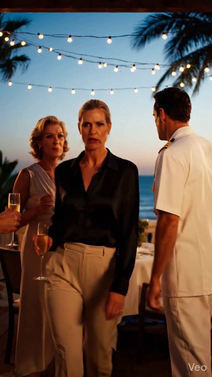 J’ai été dans des pièces où le silence signifiait danger, et des pièces où le silence signifiait autorité, et des pièces où le silence signifiait que les gens attendaient la seule voix qui comptait. C’était différent. C’était le silence social, le genre de surprise, de recalcul et d’embarras qui arrivaient en même temps. Chaque conversation autour de nous a échoué, a trébuché et s’est arrêtée. Les lumières à cordes ont froissé doucement au-dessus. Quelque part au-delà de la clôture, un chien aboie deux fois et se calme.
